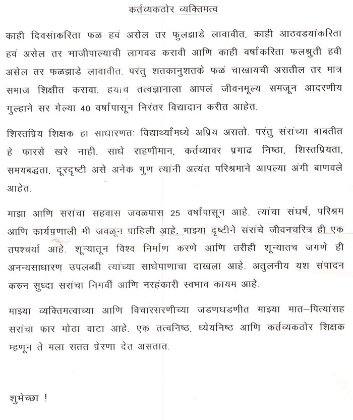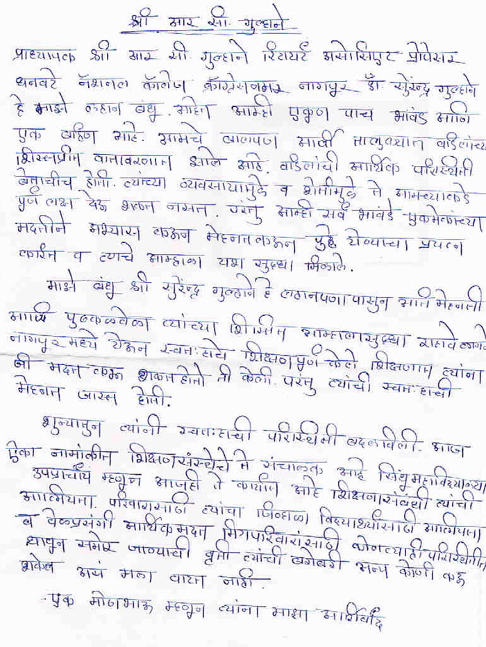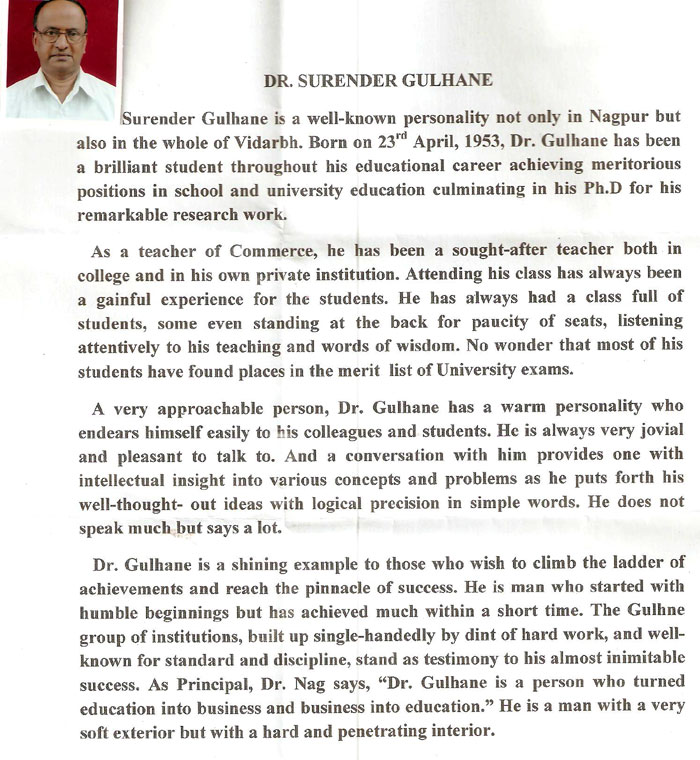 credit goes to Dr.S.C.Gulhane . A very sensitive householder, a kind father, an